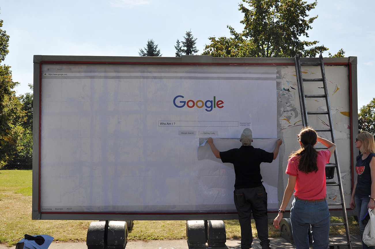 My work titled: WHO AM I ? was presented by means of carriers that are usually used to show advertisements: billboards, city lights and LED displays in the 9th International Art Moves Festival in Toru?! Poland