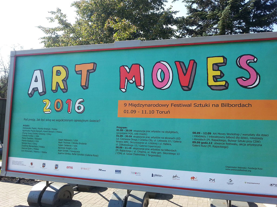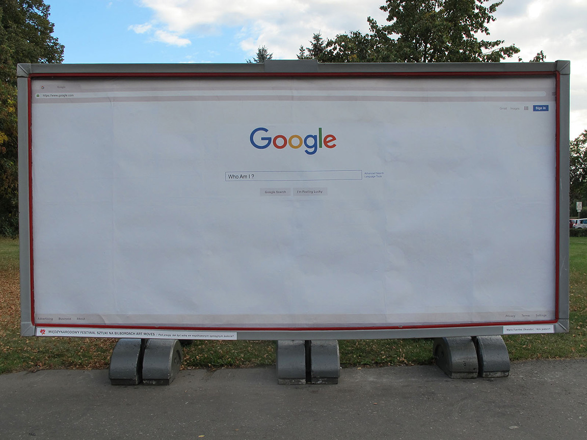 My work titled: WHO AM I ? was presented by means of carriers that are usually used to show advertisements: billboards, city lights and LED displays in the 9th International Art Moves Festival in Toru?! Poland